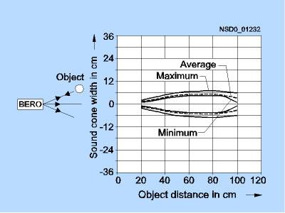 Под дальностью действия датчика Sonar-BERO понимают диапазон, в котором датчик может обнаруживать объекты.