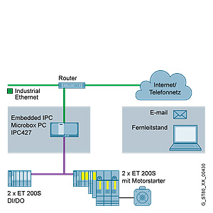 При разработке дизайна компактного устройства одновременно выполняющего функции управления, визуализации и архивирования обойтись без использования небольшого промышленного компьютера невозможно. С программным пакетом WinAC RTX промышленный компьютер заменяет функции аппаратного контроллера, позволяя при необходимости выполнять и другие функции. Разработанный для работы в жестких условиях промышленного производства и не требующий обслуживания, промышленный компьютер, например, может быть подключен к сети Internet для отправки сообщений удаленным клиентам.