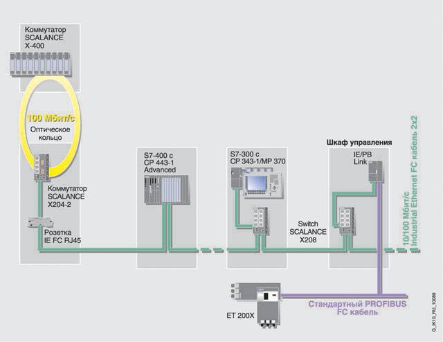 Функции - Построение линейных и звездообразных структур сети Industrial Ethernet