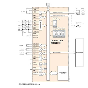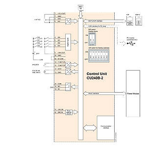 Управление преобразователем осуществляется через управляющий модуль.Управляющие модули CU240B-2 и CU240E-2 являются стандартными управляющими модулями для всех распространенных приложений с U/f- или векторным управлением.