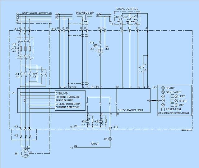Все остальные схемы, реализующие функции управления: перегрузка, прямой пускатель, пускатель звезда-треугольник, пускатель двигателя с переключением полюсов, пускатель двигателя с обмотками Dahlander, управление магнитным клапаном, управление задвижкой(servo drive) и управление устройством плавного пуска SIKOSTART 3RW22, а также пример конфигурирования включены в состав системного руководства 3UF57.