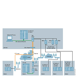 Для удаленного мониторинга и контроля могут использоваться различные виды государственных или частных сетей. Событийно управляемый или циклический обмен данными поддерживается специальными протоколами телеуправления, к которым можно отнести SINAUT ST1, SINAUT ST7, DNP3 и IEC 870-5-101/-104.