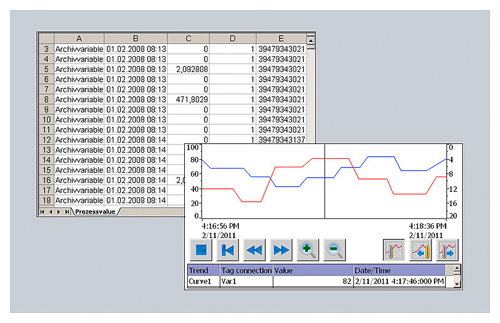 Архивируемые данные | Значения технологических параметров, сообщения |